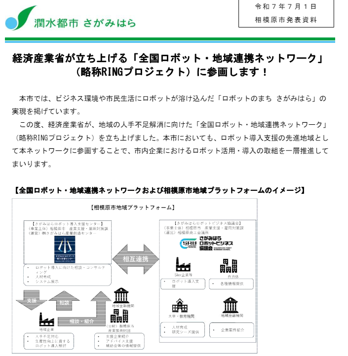 相模原市は、経産省主導の「全国ロボット・地域連携ネットワーク(RING)…